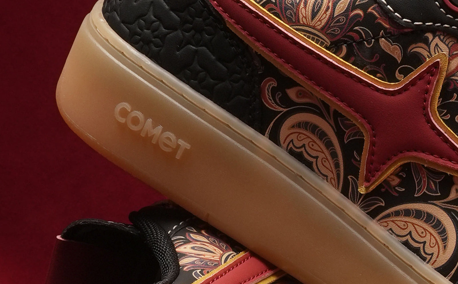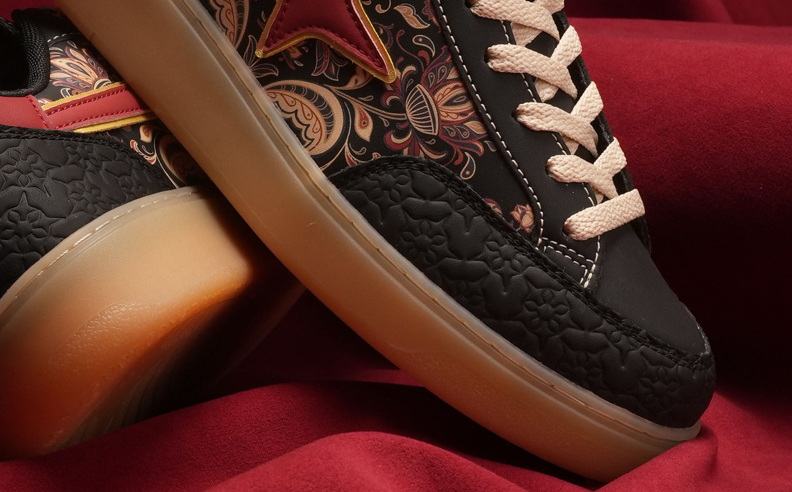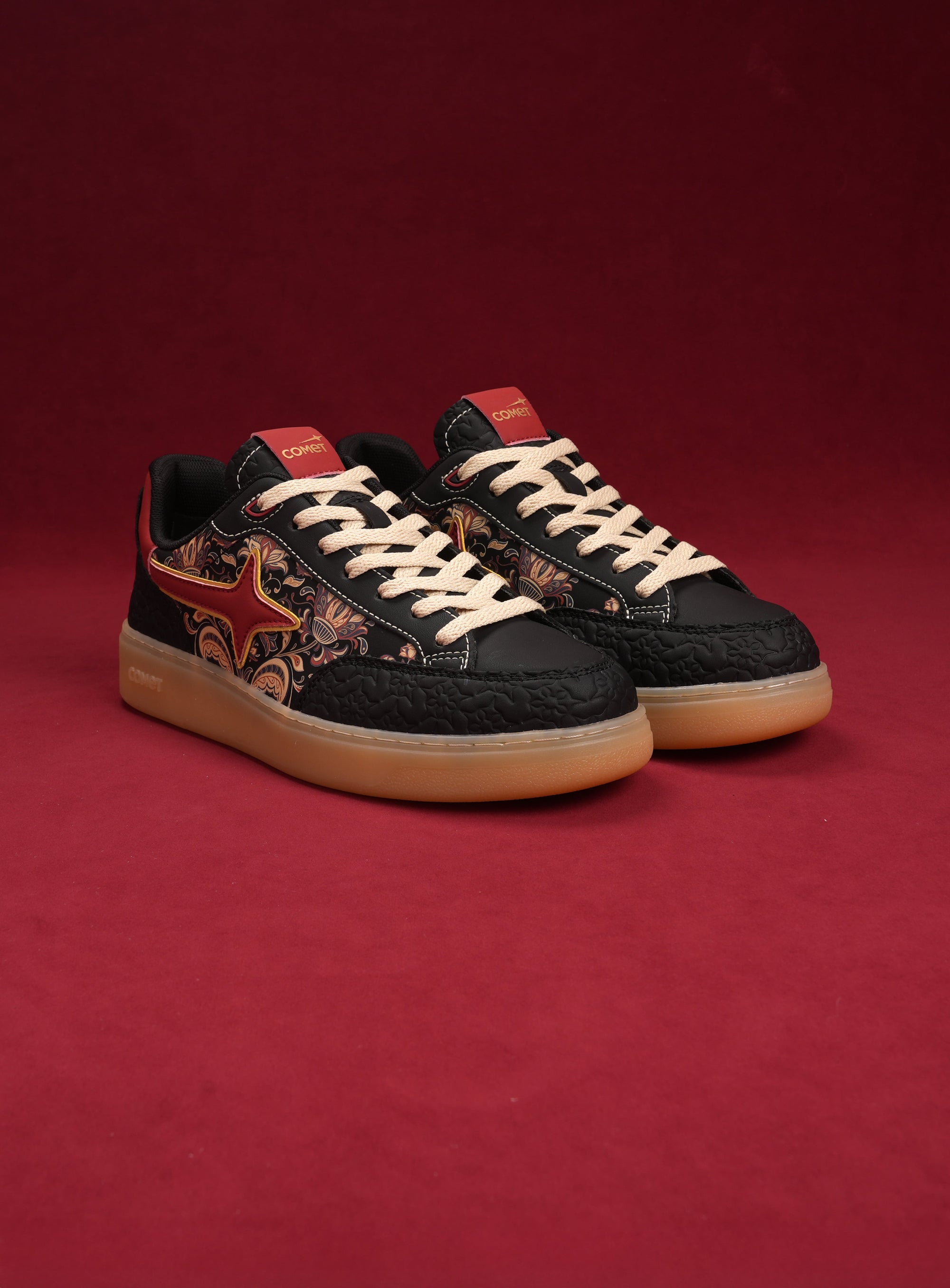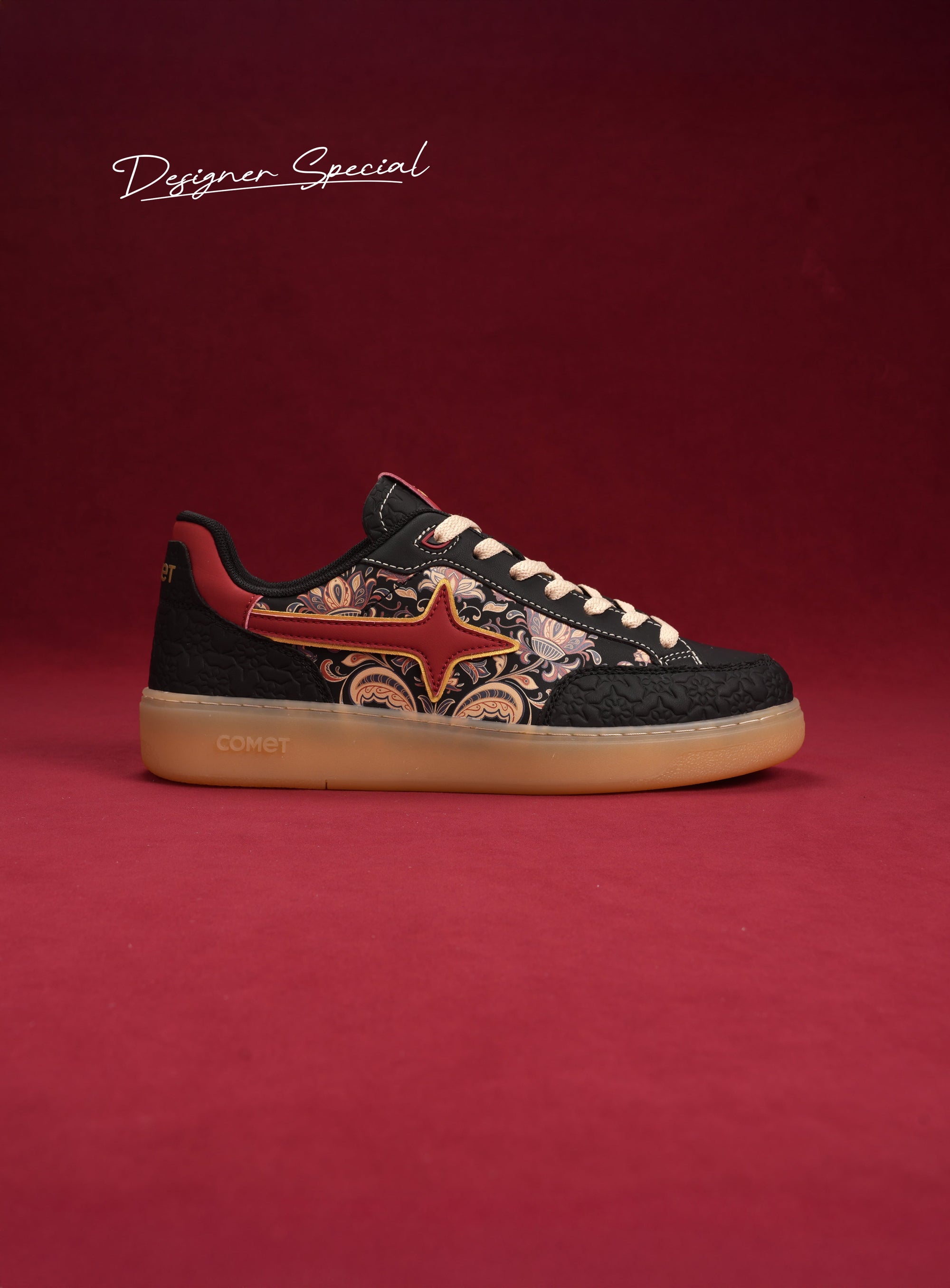 This designer special in striking black captures the essence of celebration with bold blooms and elegant artwork sweeping across the silhouette. Subtle embossing gives the design texture and dimension. The translucent sole adds a clean, modern edge that commands attention with every step. It’s the centerpiece of celebration, designed to turn moments into memories.