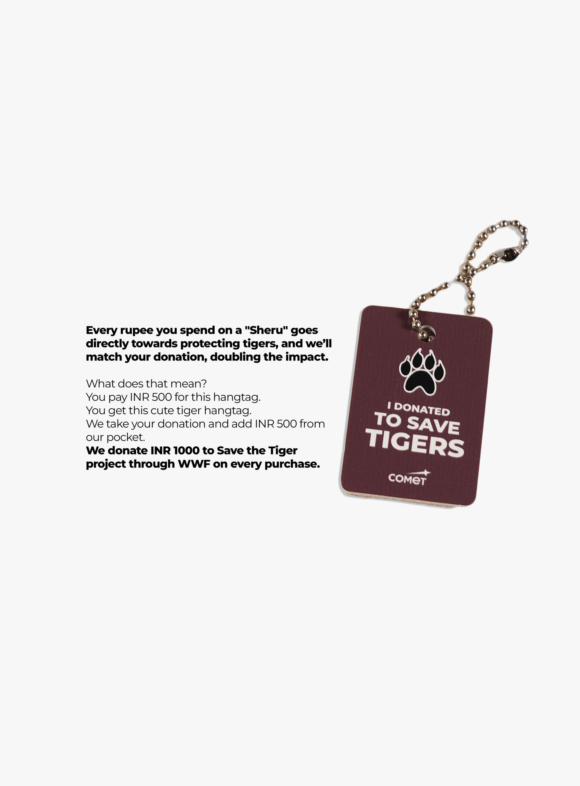 We were so moved by the story of Panna Tiger Reserve - a story of survival, resilience, and hope. That’s why we created this tiger hangtag: to do more than sit on your bag. Every rupee you spend goes directly towards protecting tigers, and we’ll match your donation, doubling the impact.
