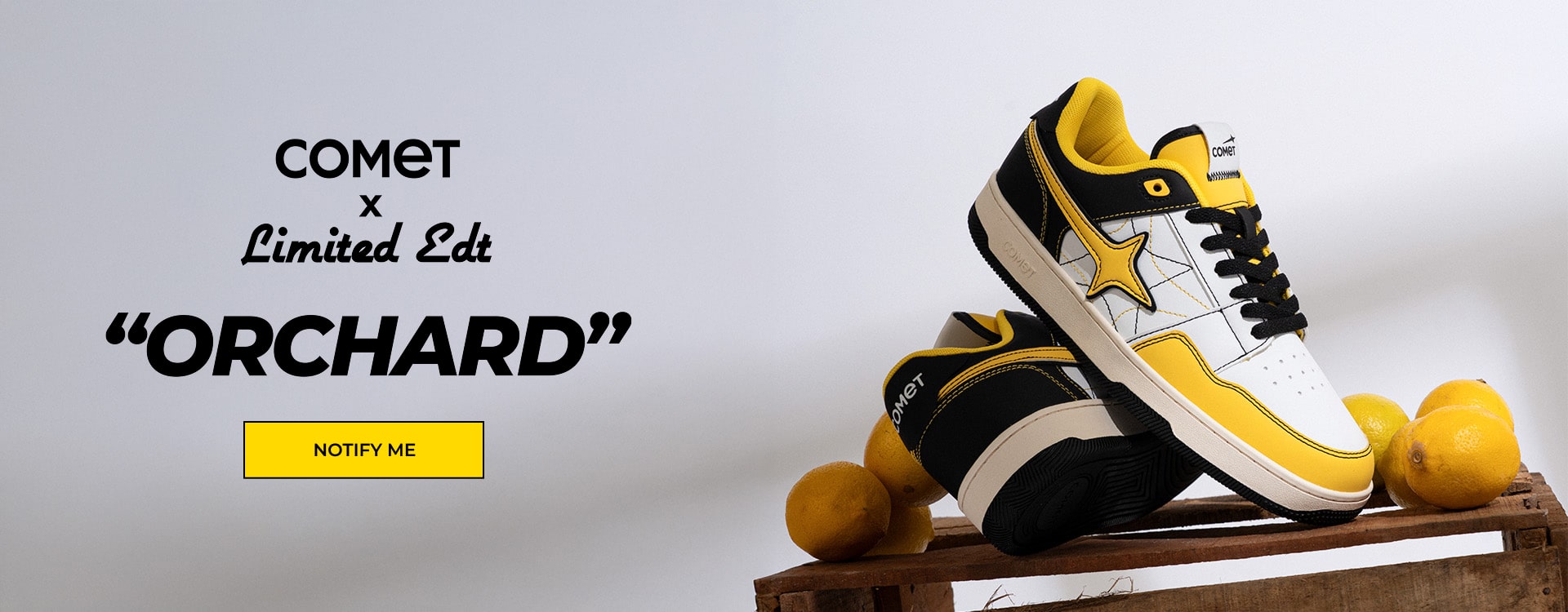 The black and yellow stitched patterns, introduced for the first time on the Comet X Lows silhouette, nod to Orchard Road’s roots as pepper and fruit plantations, long before it became a global fashion landmark. A celebration of heritage and transformation. A limited edition where two worlds unite as one design.