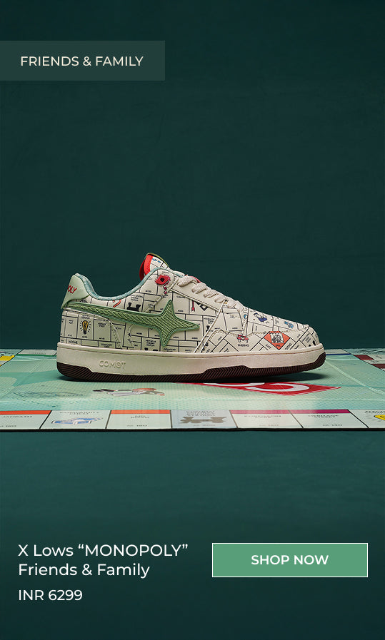 For 90 years, Monopoly has brought families together across creating connections that span generations. At Comet, as shapers of the Indian sneaker culture, we wanted to create something closer to home. To truly dive into the nostalgia and pure excitement of play that we all grew up with. The first ever sneaker to have a Monopoly board printed on it. No other reason we’re building a hotel on Linking Road or charging rent for owning Connaught Place - the only Monopoly board in the world to have these.
