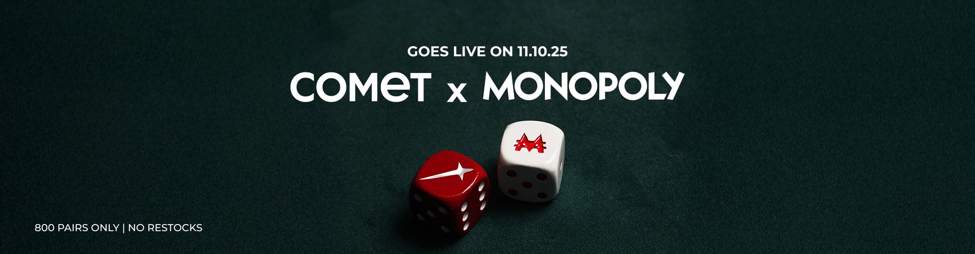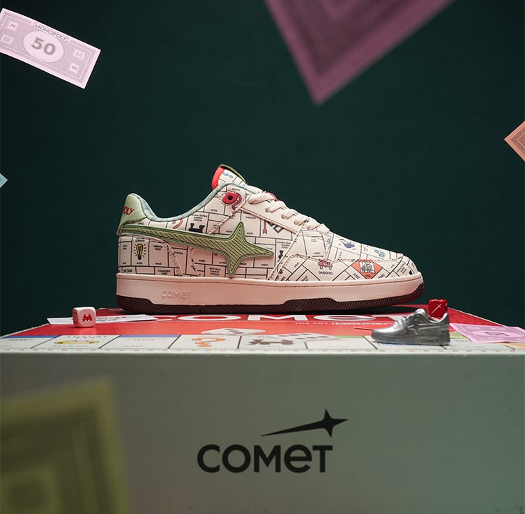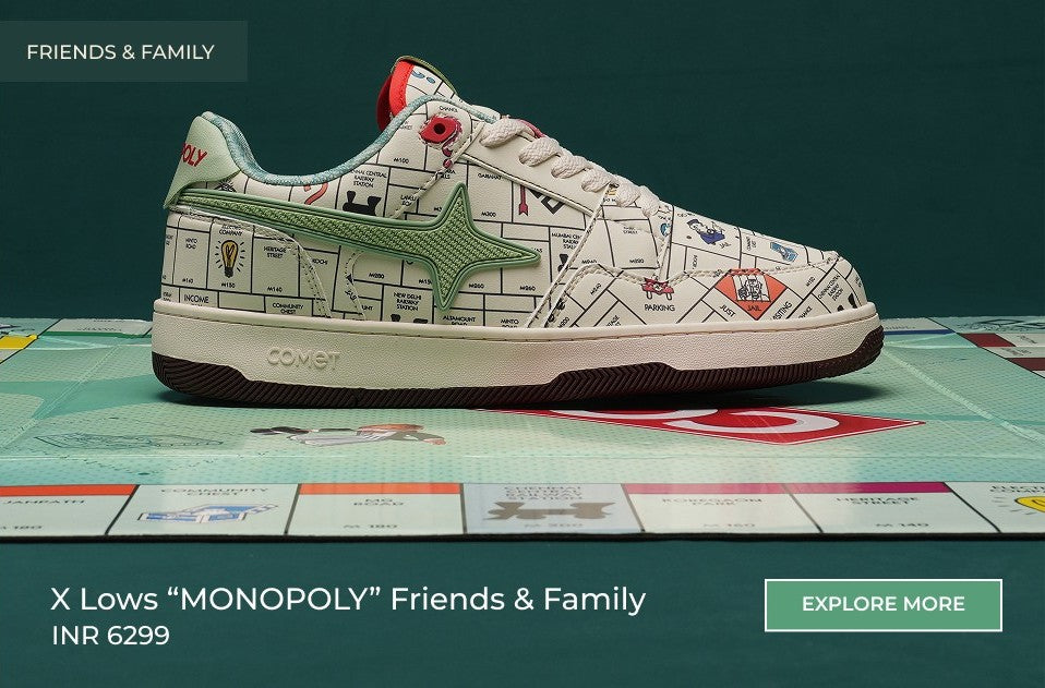 For 90 years, Monopoly has brought families together across creating connections that span generations. At Comet, as shapers of the Indian sneaker culture, we wanted to create something closer to home. To truly dive into the nostalgia and pure excitement of play that we all grew up with. The first ever sneaker to have a Monopoly board printed on it. No other reason we’re building a hotel on Linking Road or charging rent for owning Connaught Place - the only Monopoly board in the world to have these.