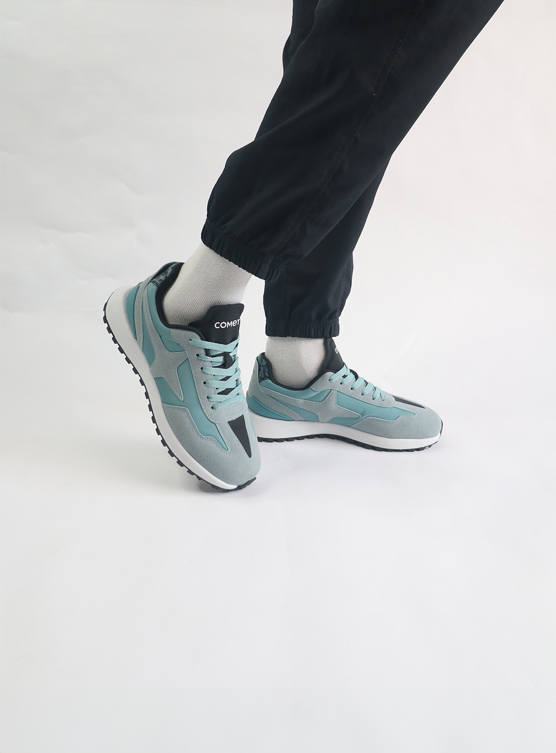 The colorblock palette, paired with sharp aesthetics, lends it a flair compared to none. The upper exterior in nylon backed with mesh underlays helps you keep cool, comfy, and nimble at the same time. Every stride is sweat-free once you slide your feet into the weightless embrace of Aeons.