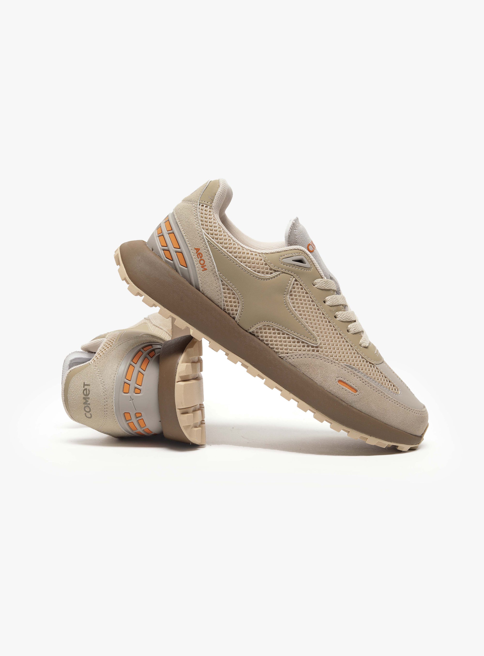 The slow crunch of earth underfoot, the warmth of late afternoon, Oyster, built on the Aeons, wraps that feeling in beige with whispers of orange. Steady, grounded, and quietly confident, it’s a shoe that moves with you. Subtle textures and tones reveal themselves as you move, hinting at character and care. Oyster is ready for wherever your day takes you.