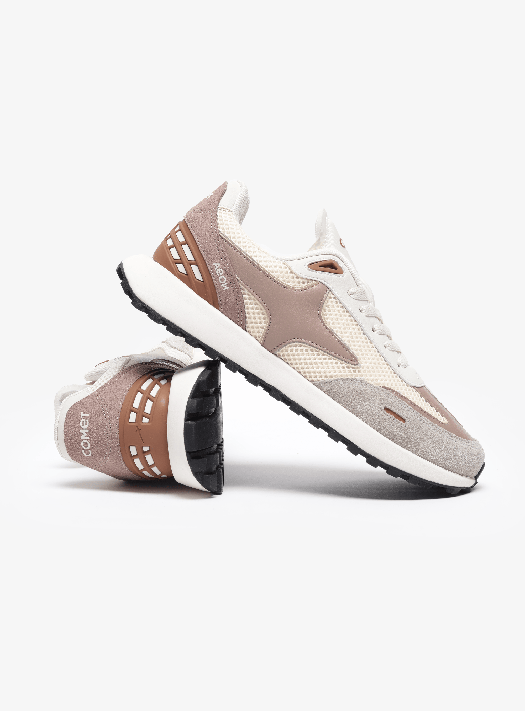 Shortcake is a sweet nod to strawberry shortcake, soft, inviting, and impossible not to love. A creamy white base sets the stage, layered with a pink-beige suede mudguard that feels as delicate as a bakery crumb. The logo pops in puce pink, echoed on the heel tab, while a deeper pink wraps the heel cage and top eyelet to add richness and depth to the palette. Clean white laces and lace paneling keep everything light and airy, letting the pink tones shine. Shortcake is playful but grown-up, blending nostalgia, comfort, and dessert-inspired charm in every step.