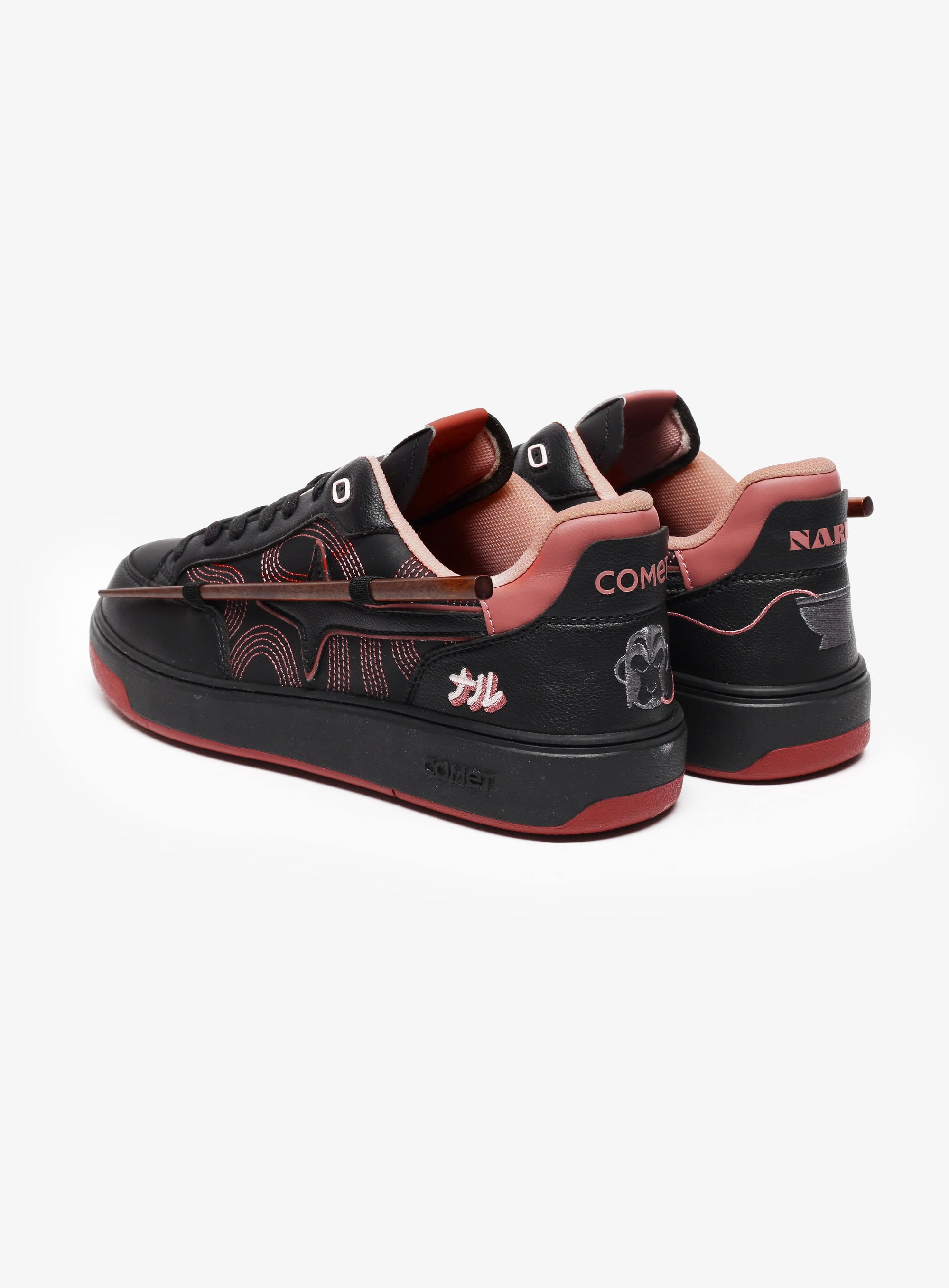 It draws from the world Naru has carefully cultivated - layered, precise, and full of intent. Signature embroidery, chopstick detailing, the ramen bowl artwork, and the iconic mascot all take their place. Hidden beneath the heel tabs, Uzumaki and Ajitama reveal themselves - quiet nods for those who know where to look.