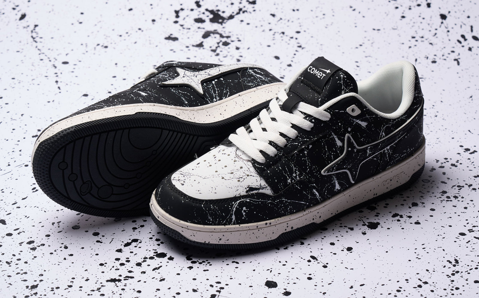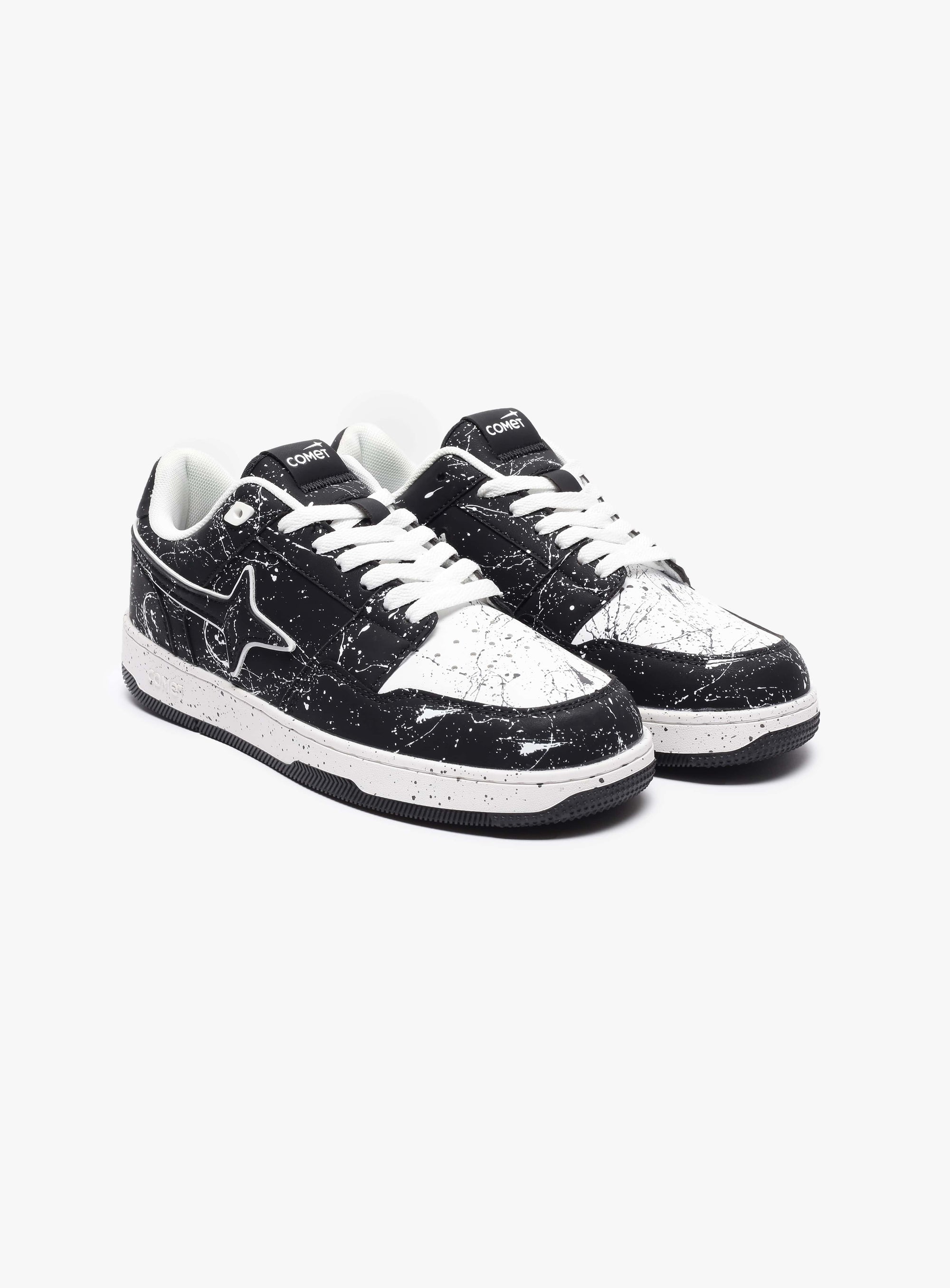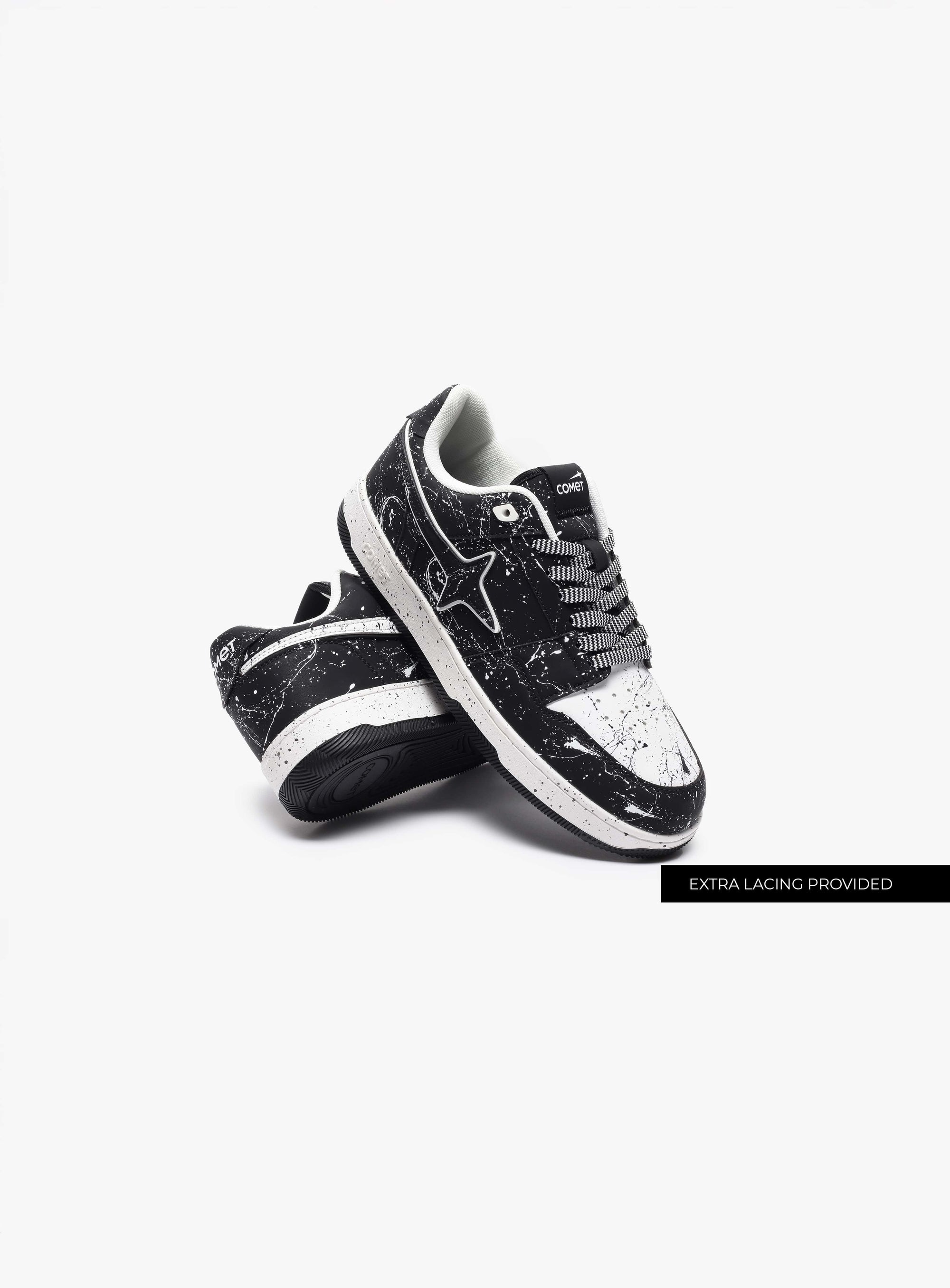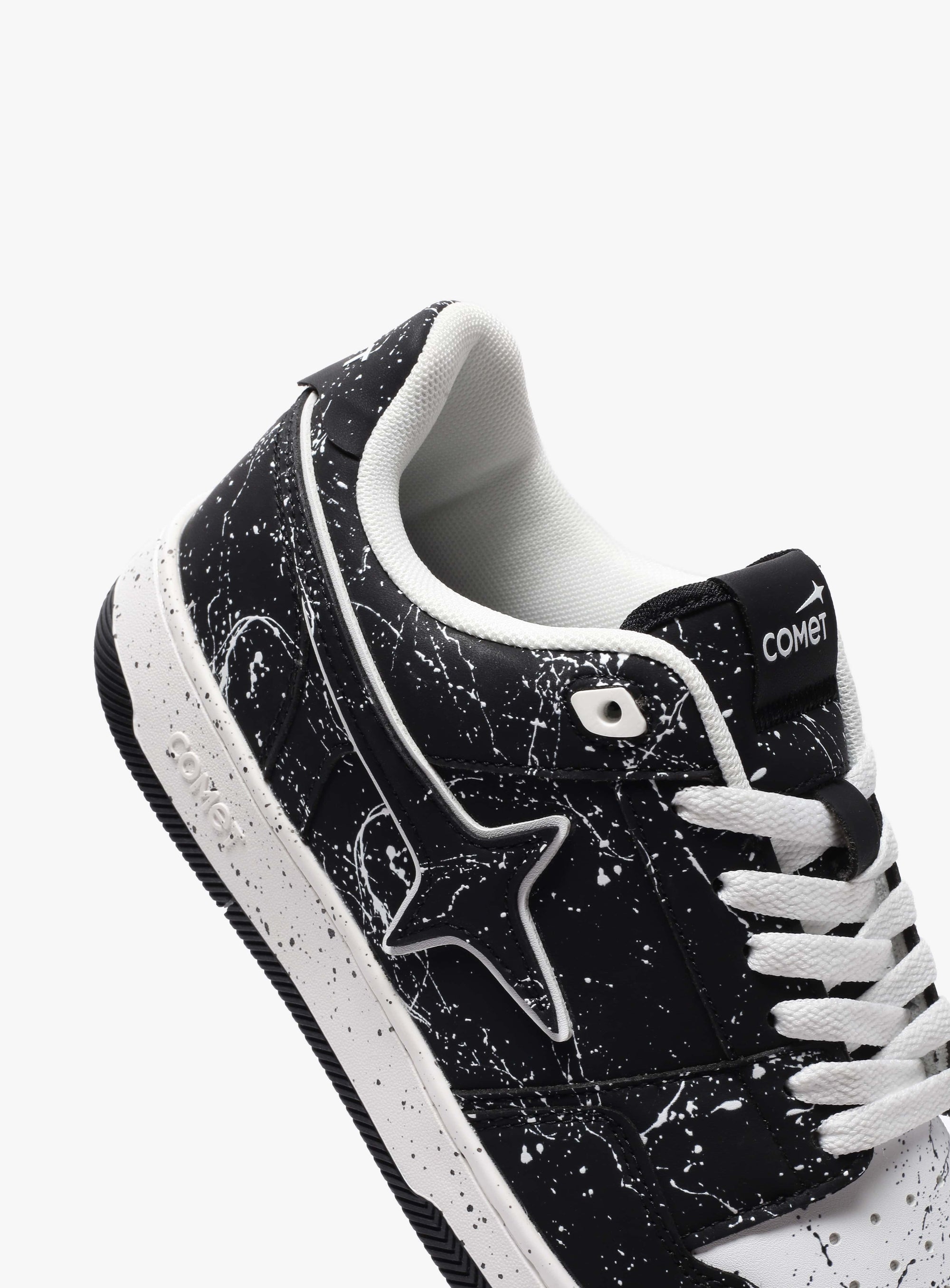 In this spirit of unrestrained self-expression comes the Decibel. Its striking black and white paint splatter design represents that moment when inhibitions fade and the true self takes over. The clean white laces are reminiscent of clarity emerging from chaos, a gentle reminder that it's not about rebellion, but revelation.