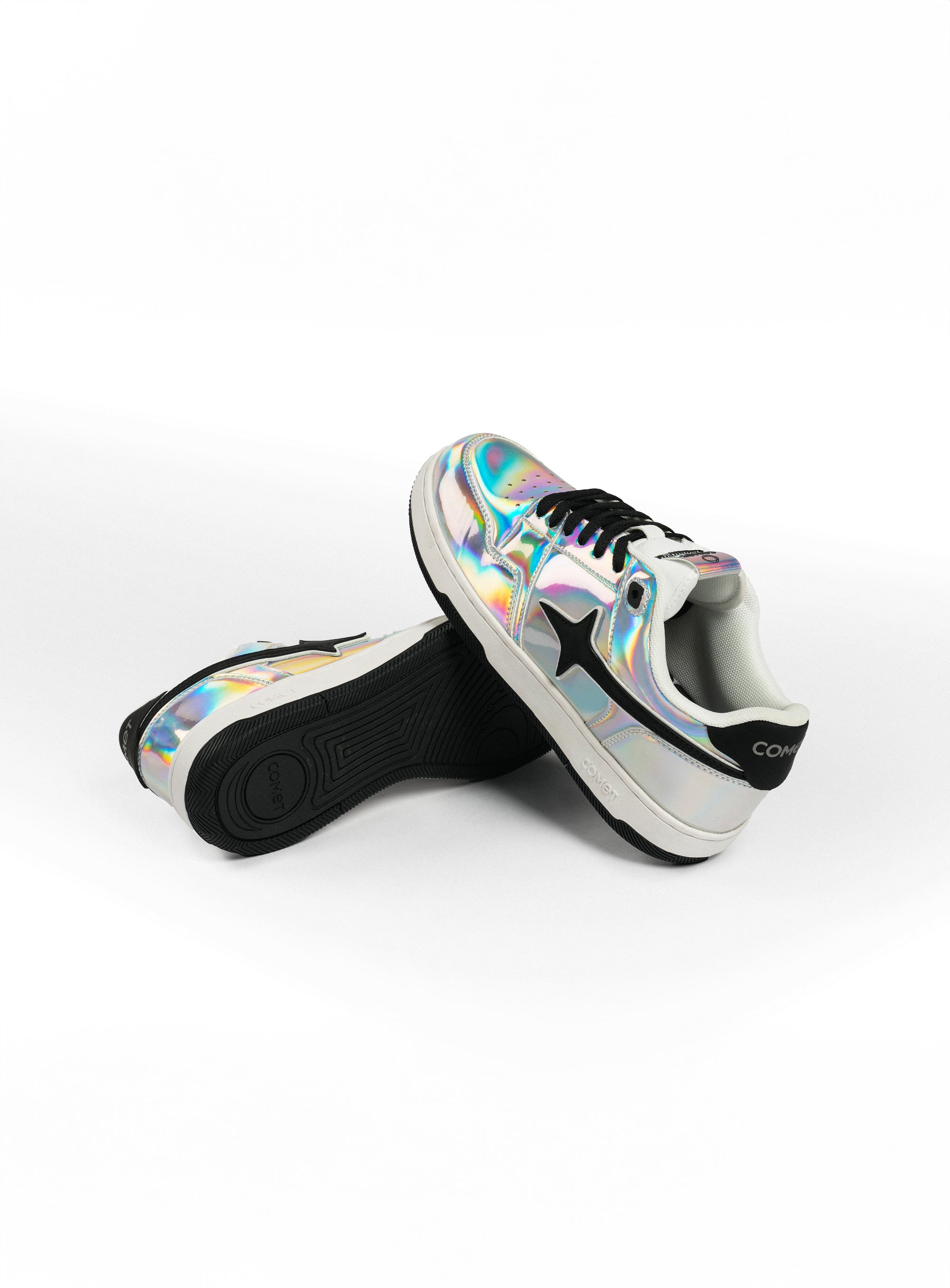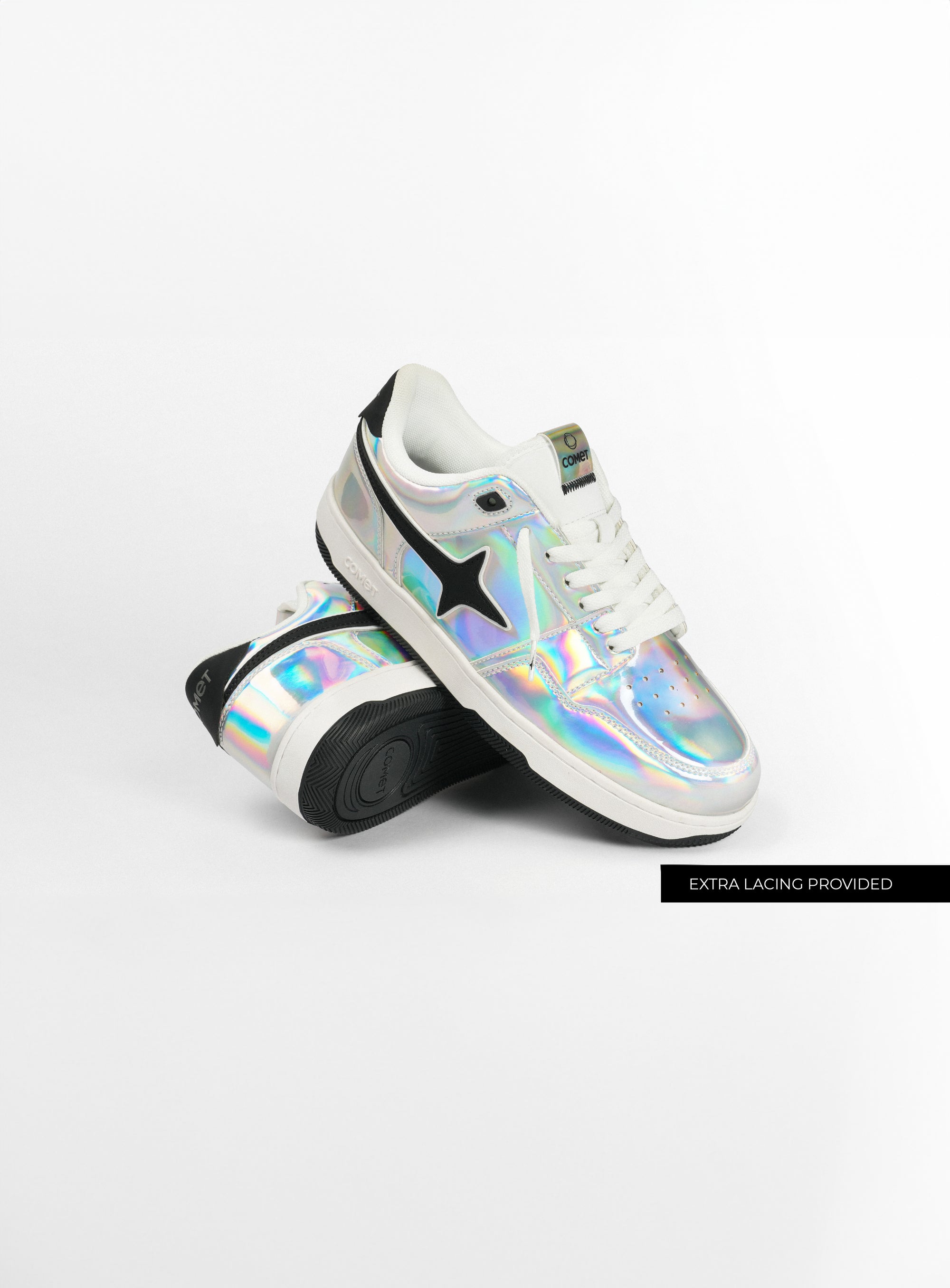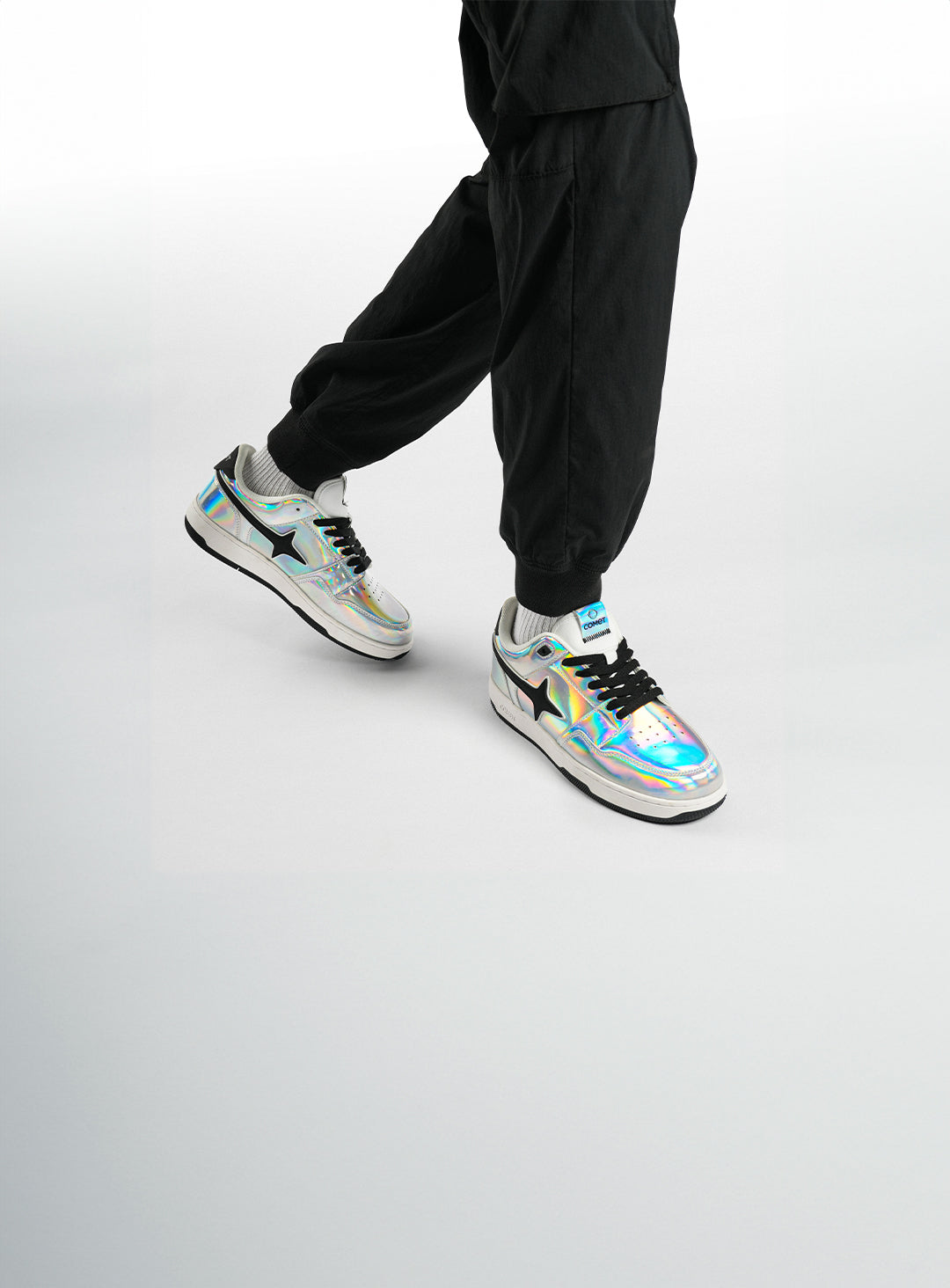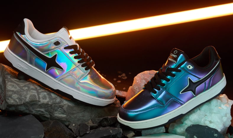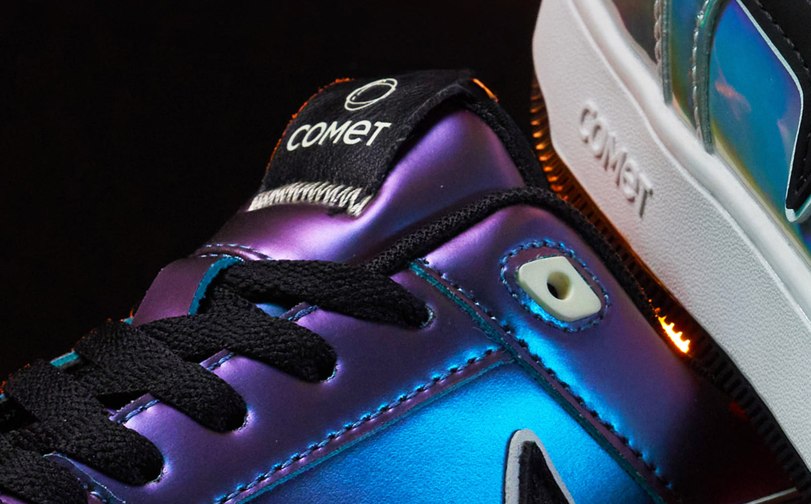 The sneakers stand for the never shy, never sorry grit that pushes them to leap beyond every boundary and take on the road to a journey beyond imagination. The iridescent sheen of the shoe is a glimpse of this cosmic journey. The metallic charm is a reflection of their awe-inspiring charisma and paints the true colours of their passion.