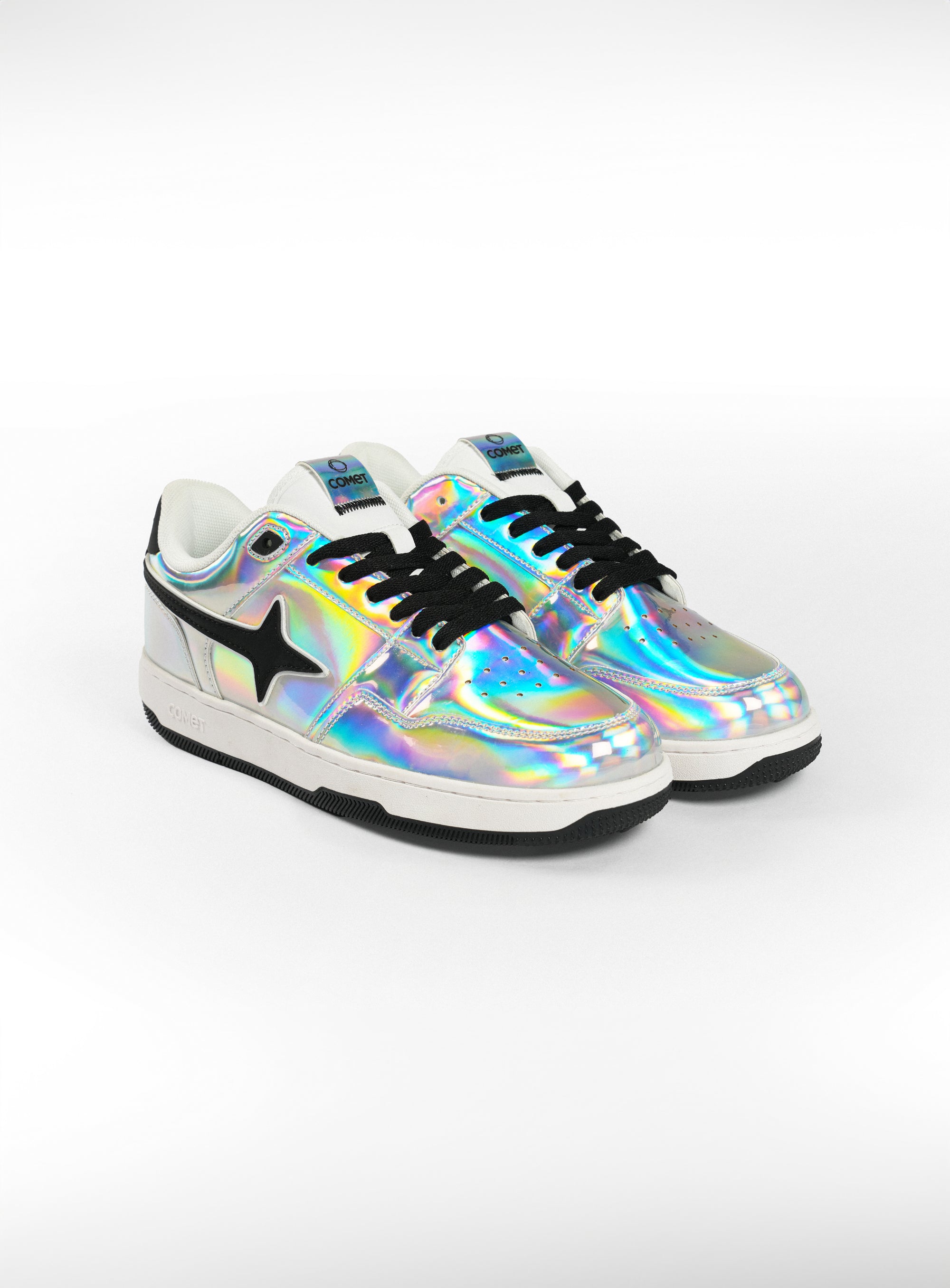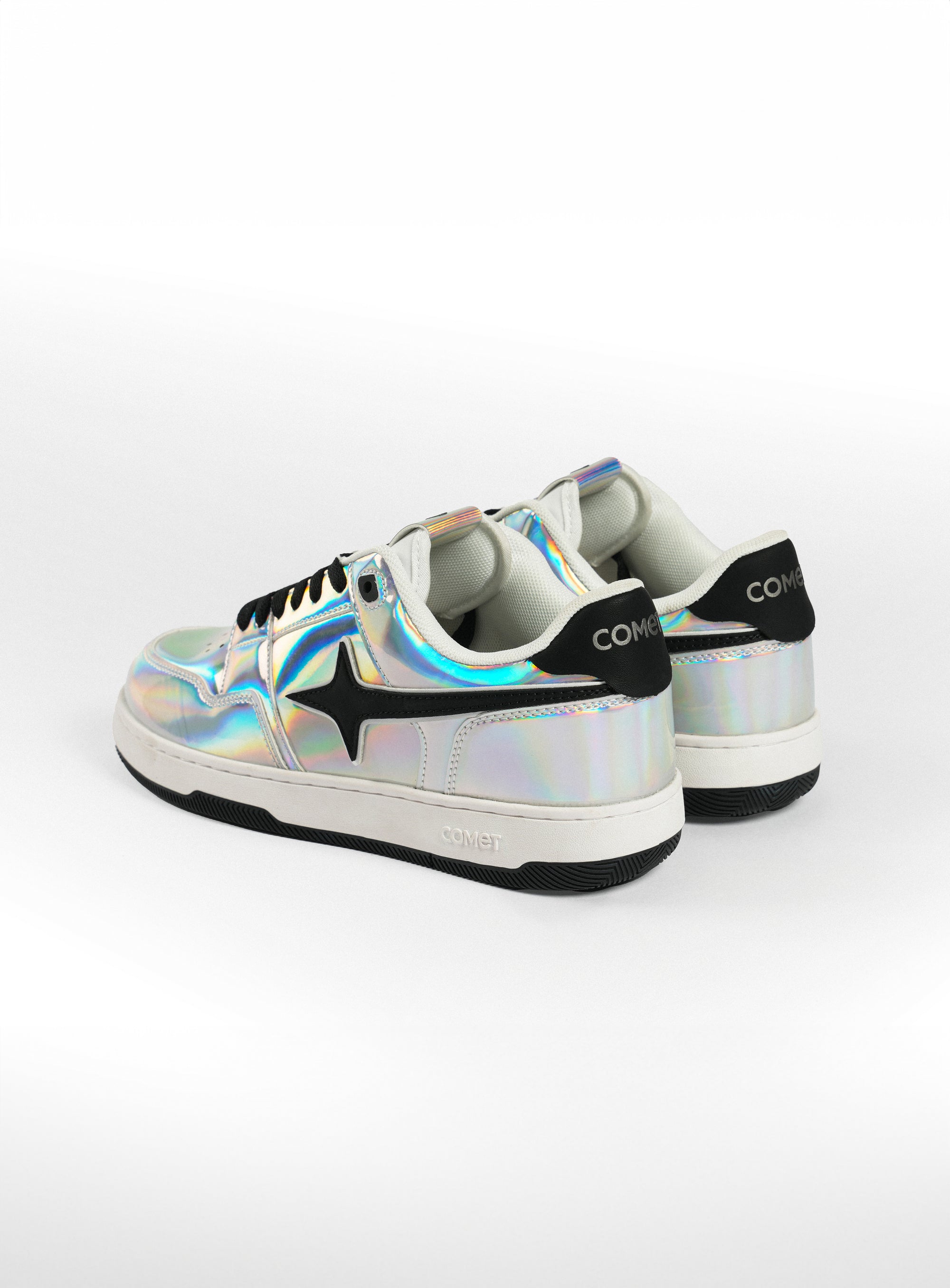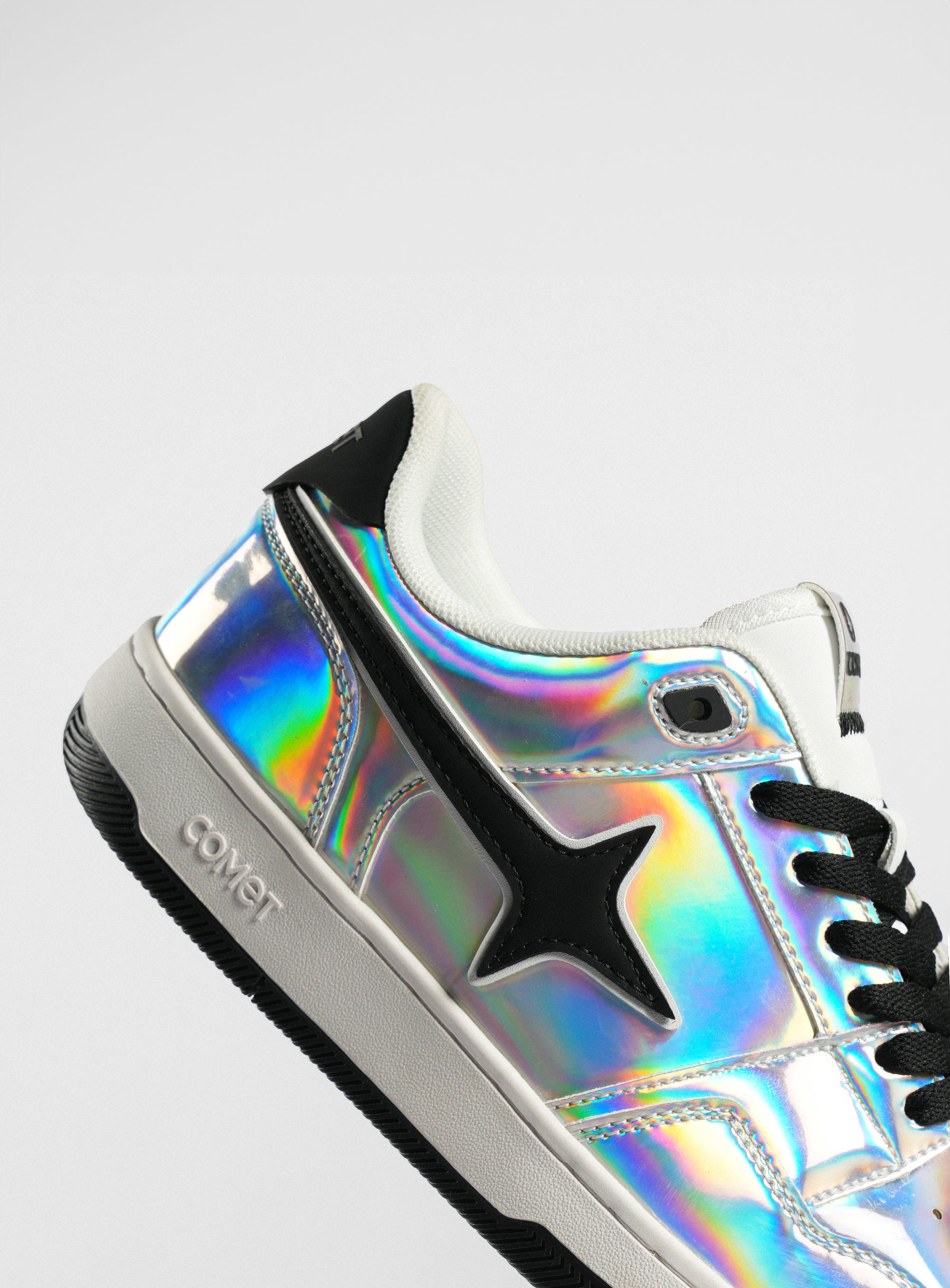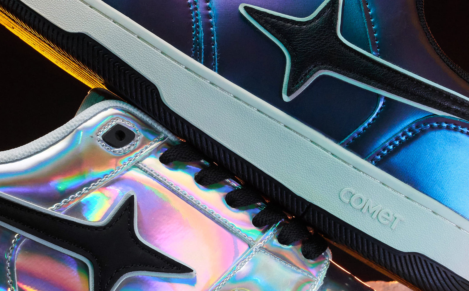 The sneakers stand for the never shy, never sorry grit that pushes them to leap beyond every boundary and take on the road to a journey beyond imagination. The iridescent sheen of the shoe is a glimpse of this cosmic journey. The metallic charm is a reflection of their awe-inspiring charisma and paints the true colours of their passion.