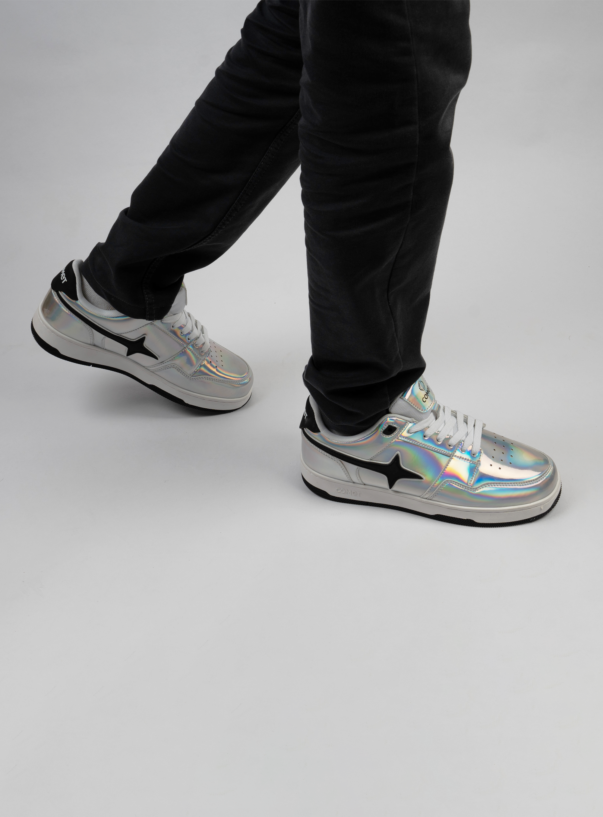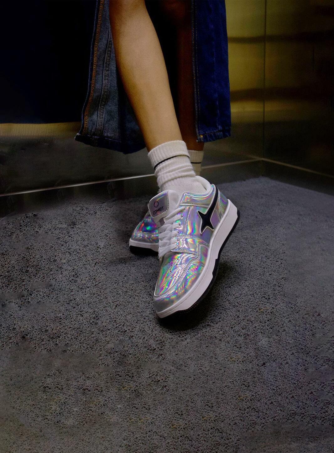 The sneakers stand for the never shy, never sorry grit that pushes them to leap beyond every boundary and take on the road to a journey beyond imagination. The iridescent sheen of the shoe is a glimpse of this cosmic journey. The metallic charm is a reflection of their awe-inspiring charisma and paints the true colours of their passion.