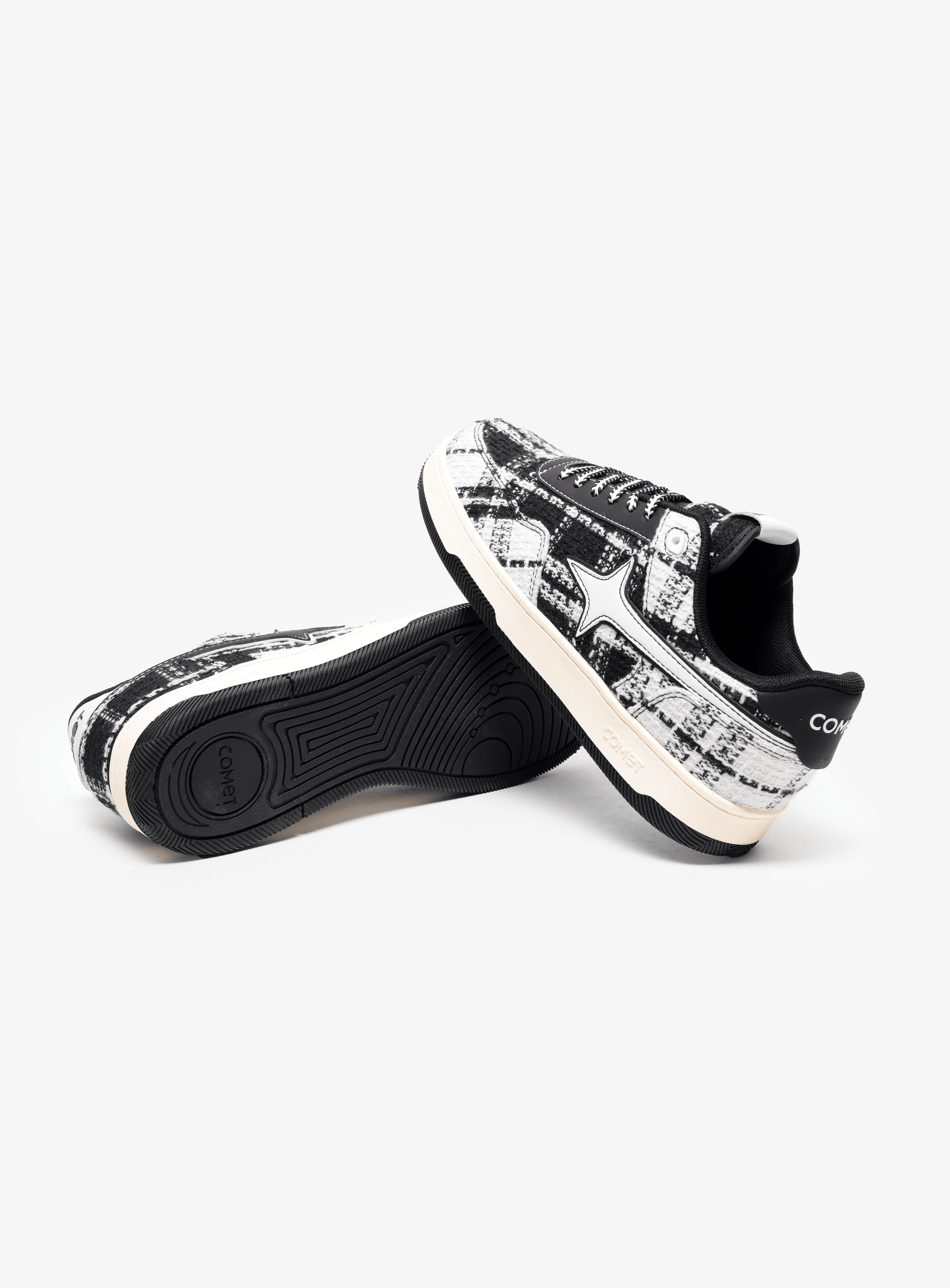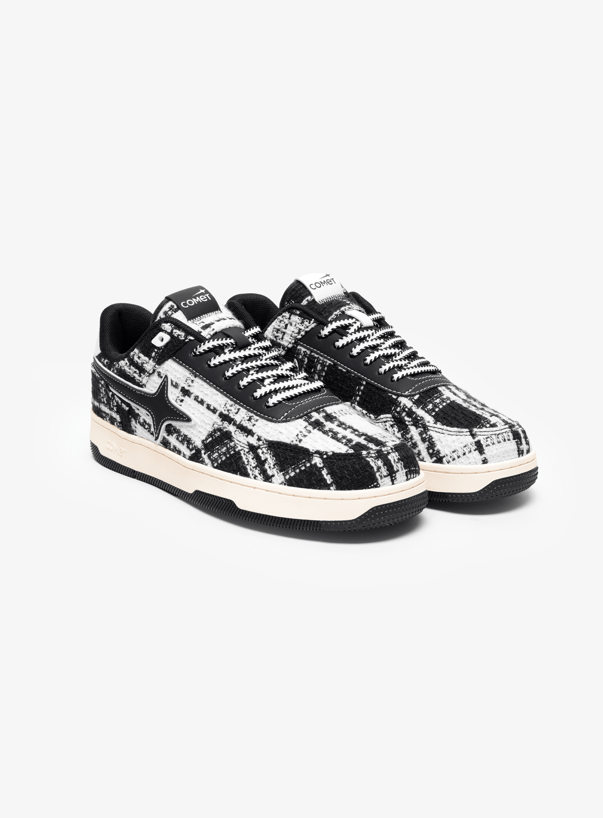 Built on the X Low, this Designer Special rejects the expected. Featuring textured fabric uppers wrapped in high-contrast black and white checks, every stitch is a deliberate act of imbalance. It’s a silhouette that refuses to blend in, made for those who move on instinct and dress by their own rules.