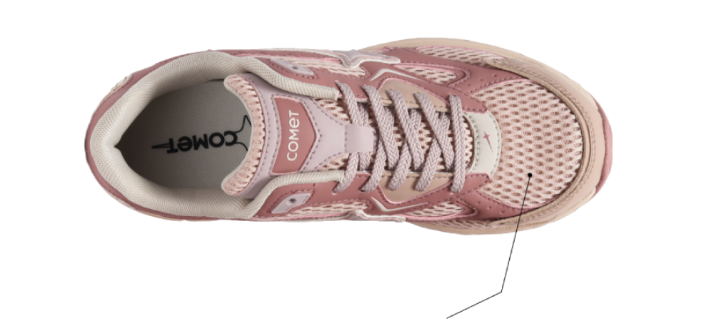 The monochromatic palette lends it a sleek appearance. The right layers of microfiber and mesh promise it will stay breathable, nimble, and edgy at all hours. Each time you slide your feet into a Comet shoe, prepare to descend into a cosy embrace.